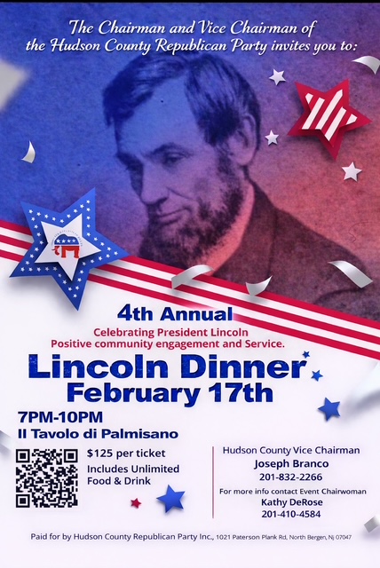 The Chairman and Vice Chairman of the Hudson County Republican Party invites you to the 4th Annual Lincoln Dinner.