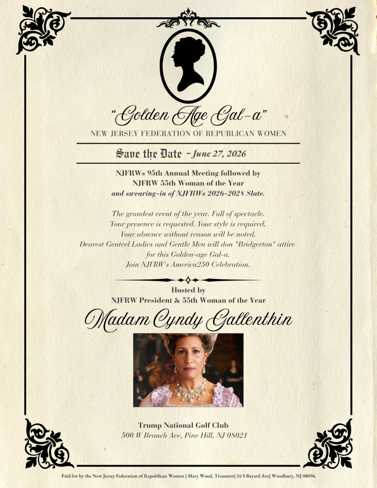 Save the date for NJFRW’s 95th Annual Meeting followed by NJFRW 55th Woman of the Year and swearing-in of NJFRW’s 2026-2028 slate.