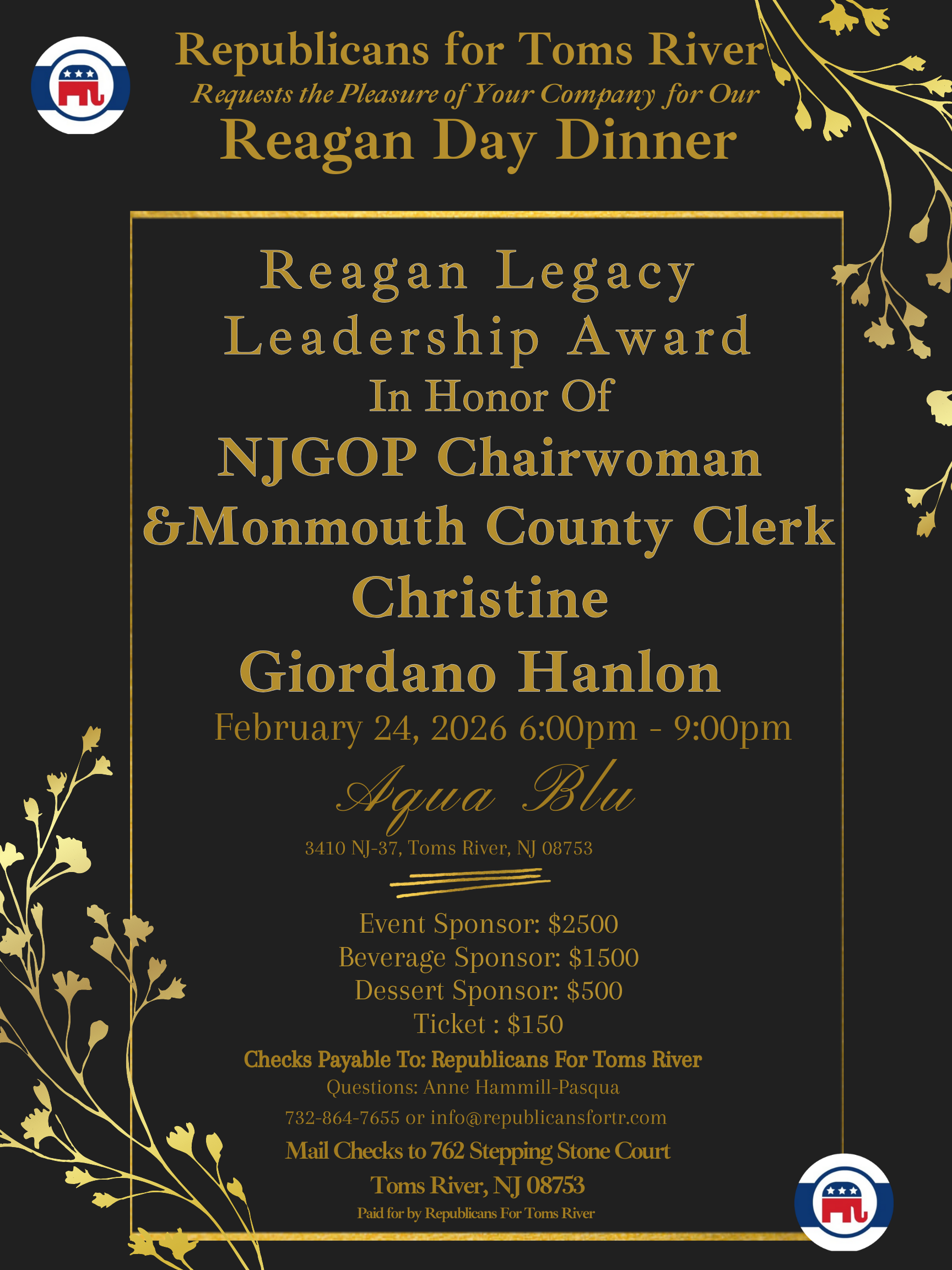 Join the Sussex County Republican Committee for a special Lincoln Day Brunch. The Beacon 453 River Styx Rd Hopatcong, NJ Special Guest Speakers: Tom Kean, Congressman Bill Bachenberg, NRA President […]